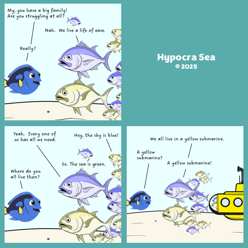 Hypocra Sea is a comic strip poking fun at hypocrisy in a fictional undersea society. Any resemblance to real life is the sign of an active imagination.