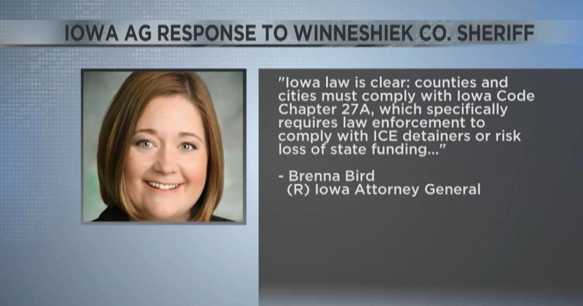 Iowa@midwest.social•IA AG opens investigation into Winneshiek county sheriff for requiring valid warrant assist with with ICE detainers [video]